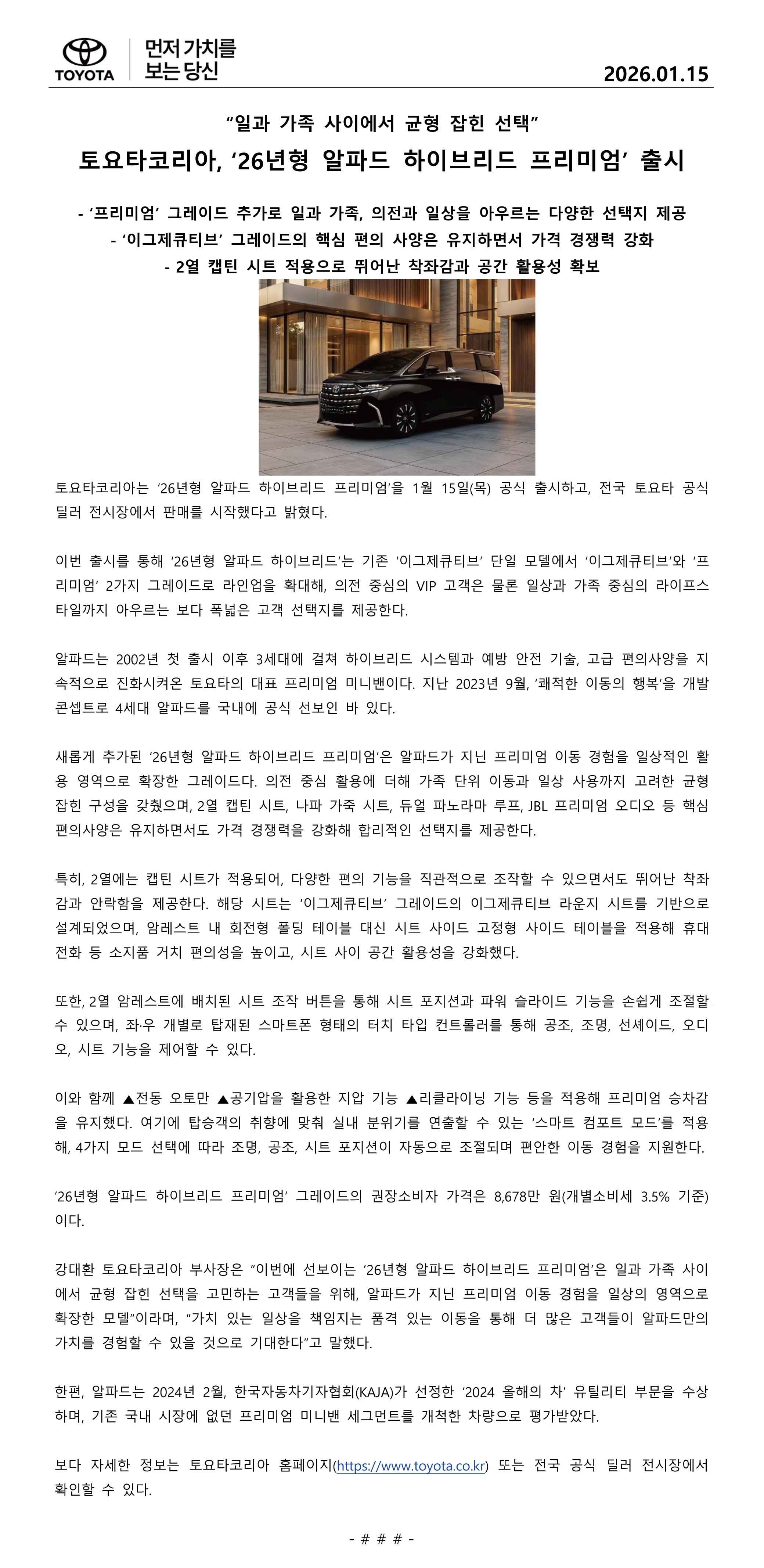 이에 한국토요타자동차 웹사이트는 2023년 2월부로