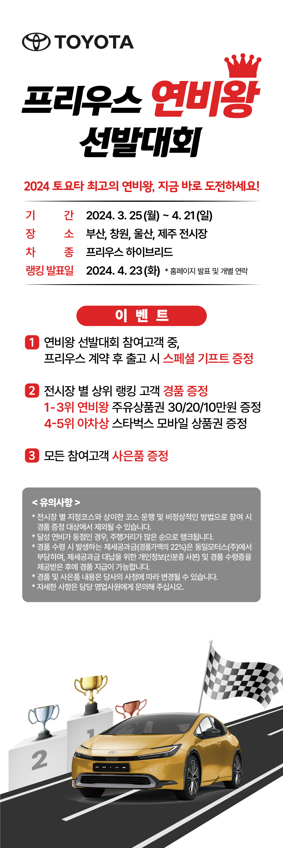 * 본 행사는 토요타 부산, 창원, 울산, 제주 전시장에서만 진행되는 이벤트입니다.