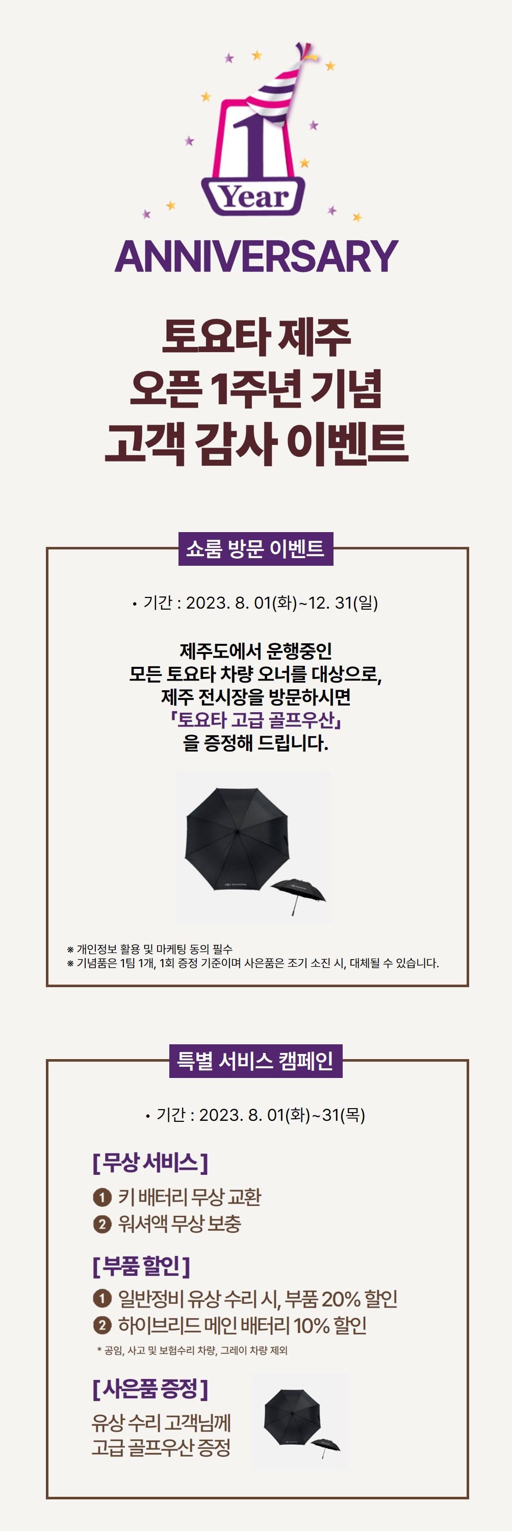 토요타 제주 오픈 1주년 고객 감사 이벤트