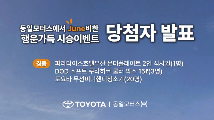 동일모터스가 June비한 행운가득 시승이벤트 당첨고객 발표