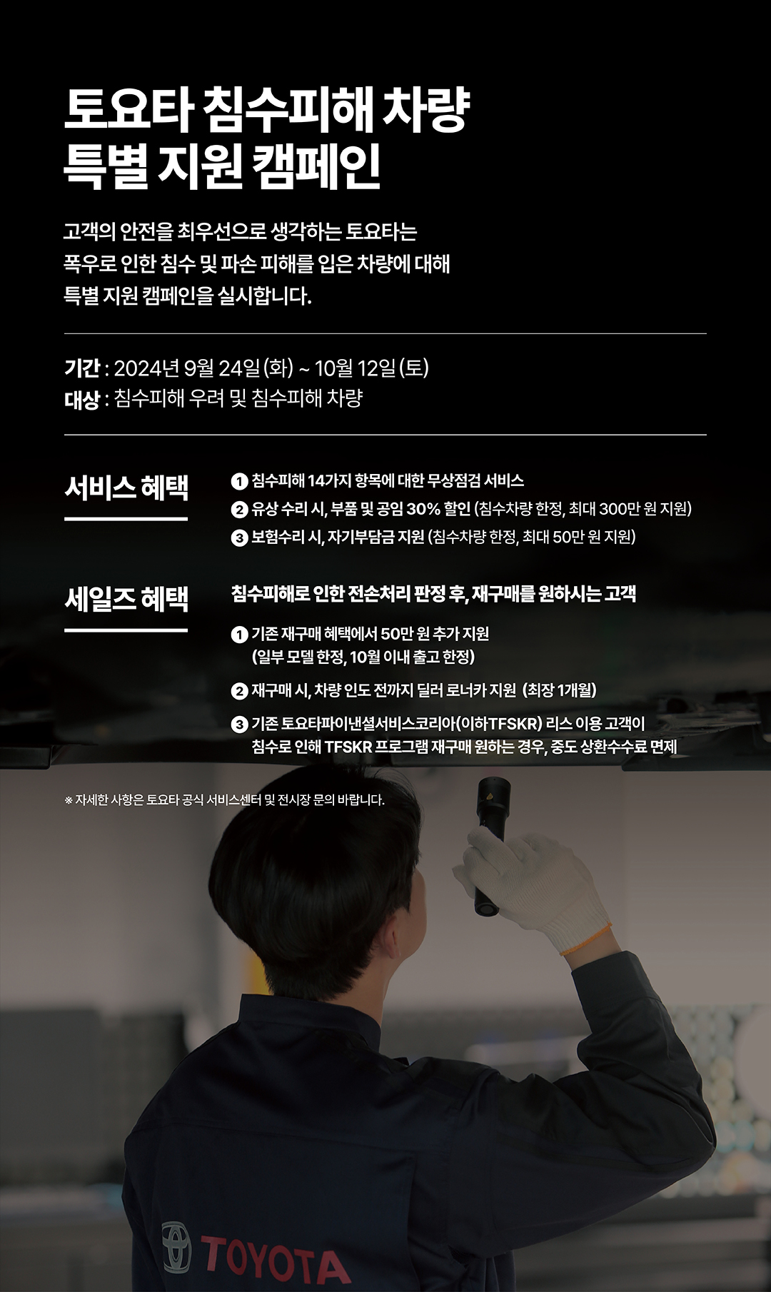 폭우로 인한 침수 및 파손 피해를 입은 차량을 대상으로 특별 지원 캠페인을 실시합니다.