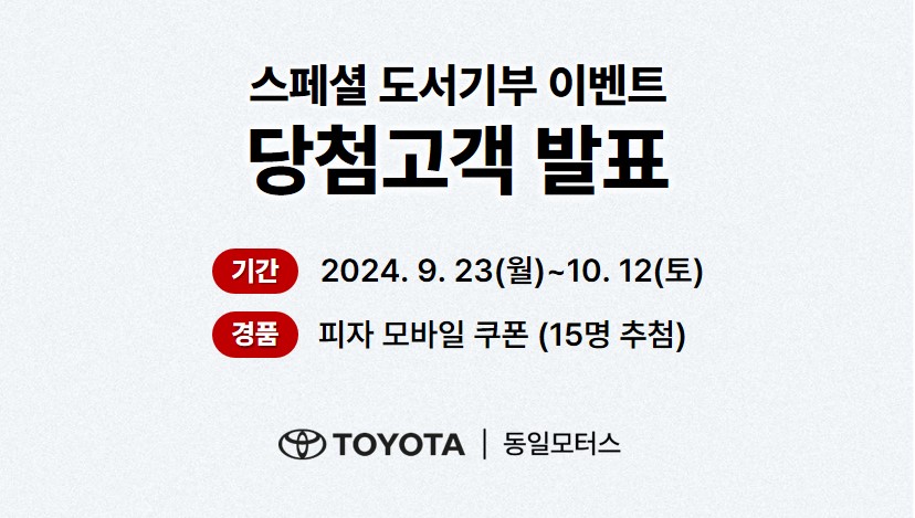 2024 동일모터스 스페셜 도서기부 이벤트에 참여해 주셔서 감사합니다.