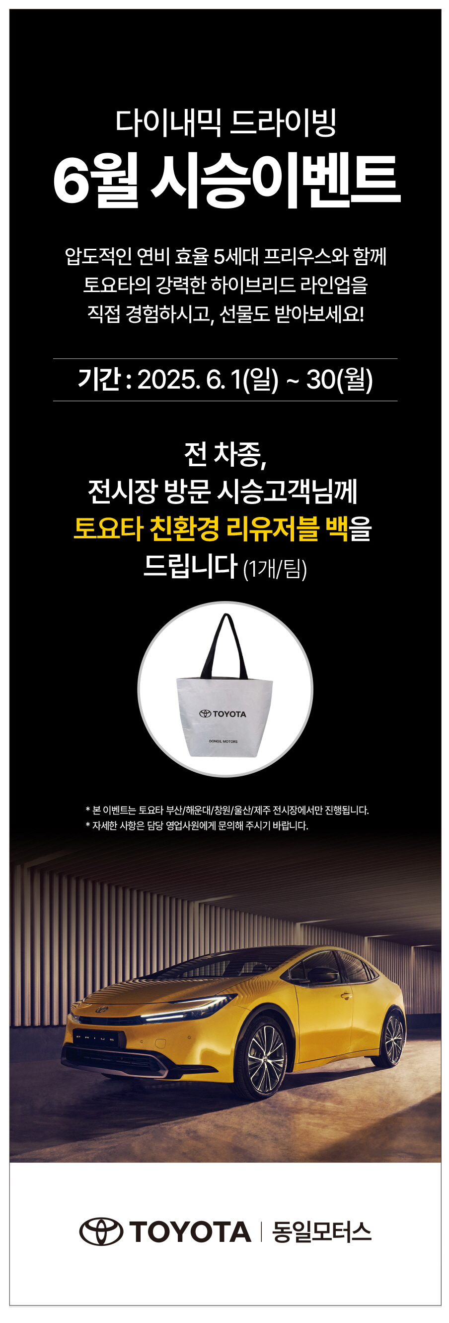 - 본 이벤트는 토요타 부산/해운대/창원/울산/제주 전시장에서만 진행됩니다.