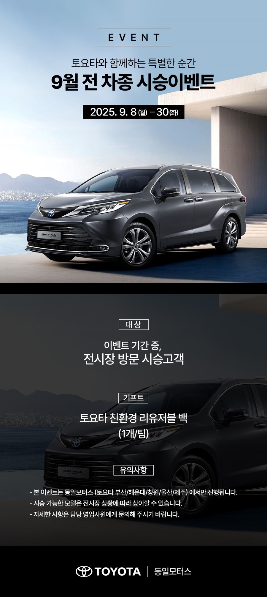 토요타와 함께하는 특별한 순간, 9월 전 차종 시승이벤트
