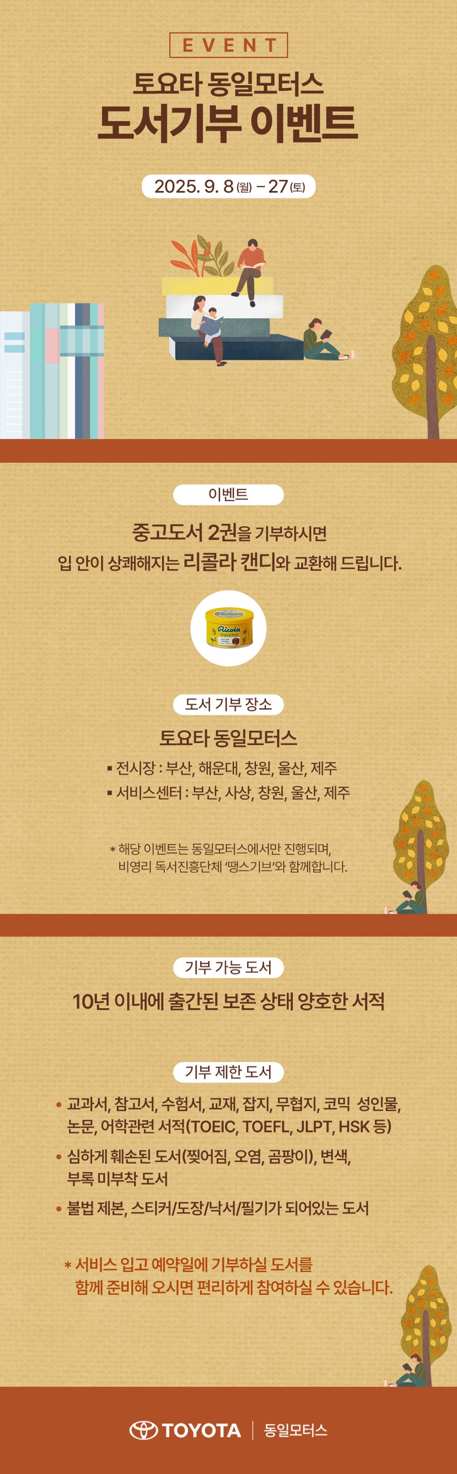 ♥ 서비스 입고고객님께서는 예약일에 기부하실 도서를 함께 준비해 오시면 편리하게 참여하실 수 있습니다. 고객님의 많은 관심과 참여를 기다리고 있겠습니다. ♥