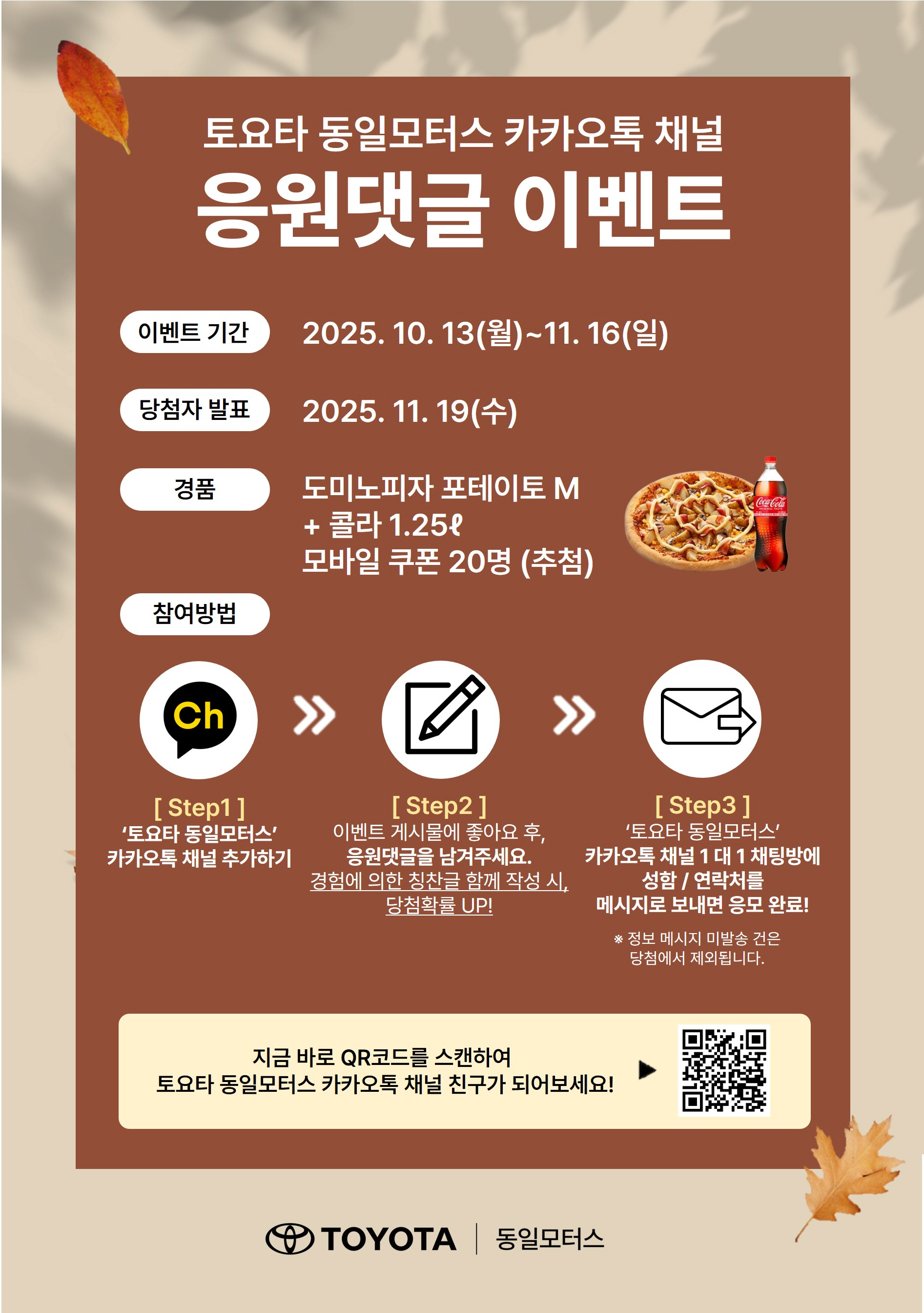 토요타 동일모터스 카카오톡 채널 응원댓글 이벤트