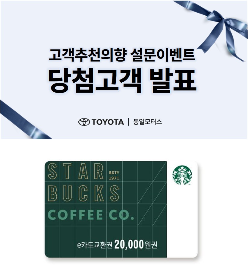 토요타 동일모터스 설문이벤트에 참여해주신 모든 고객님께 감사드리며,
