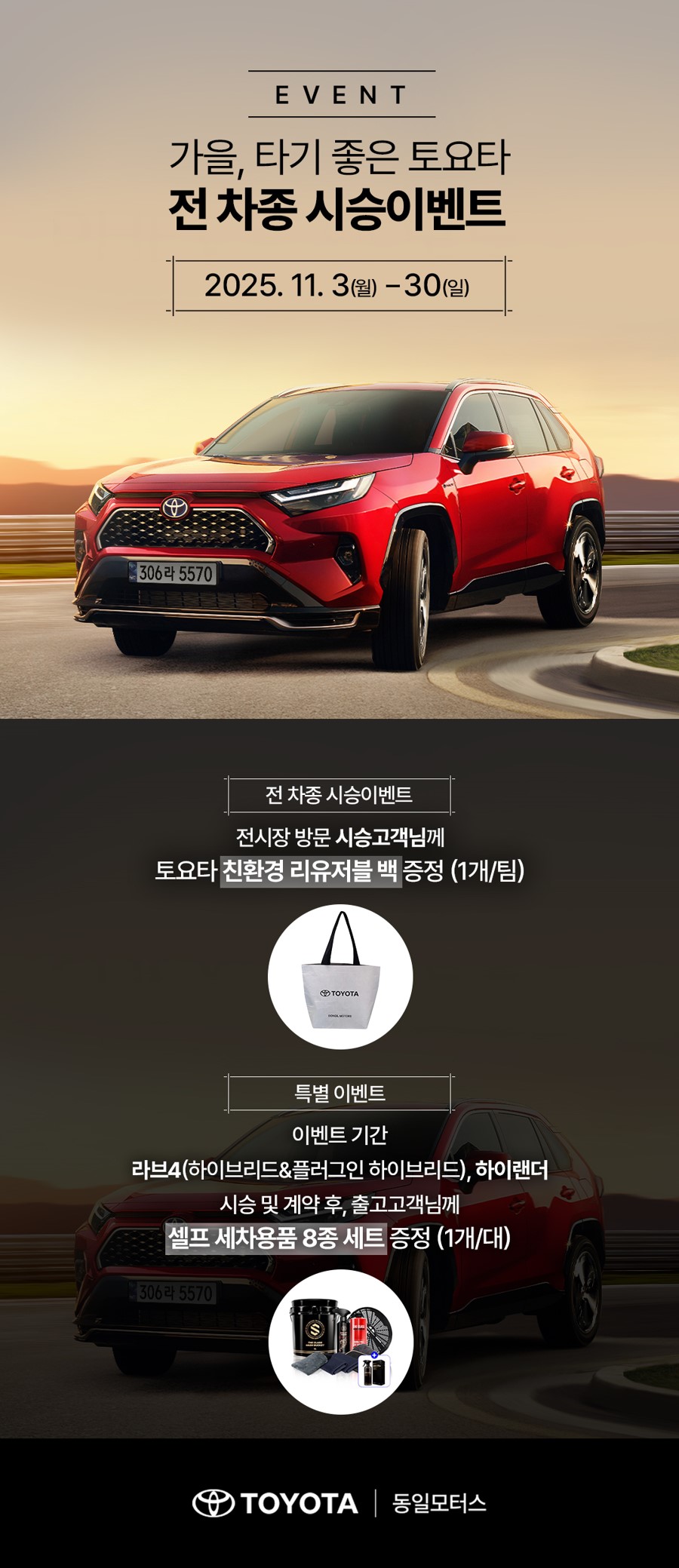 - 특별이벤트 사은품은 라브4와 하이랜더 시승 및 계약 후, 11월 내 출고에 한해 증정됩니다.