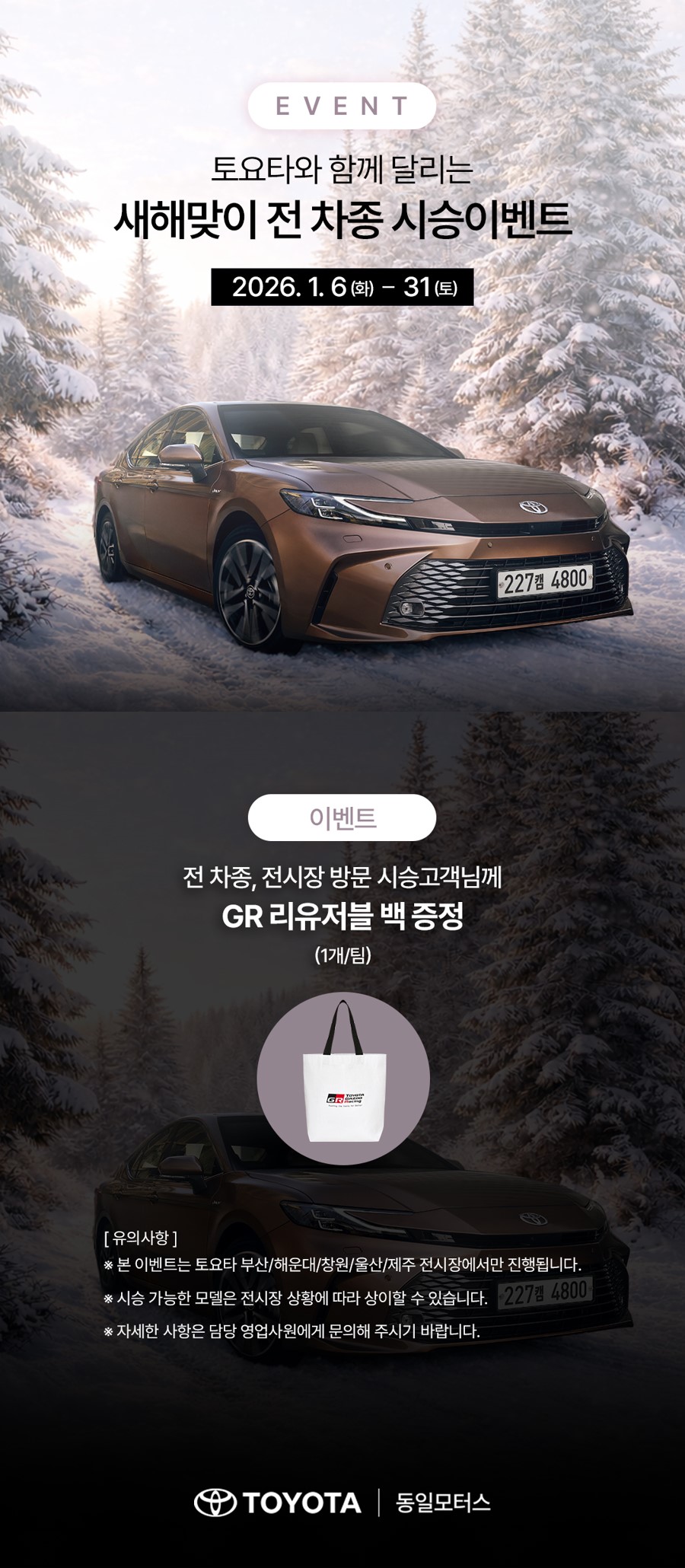 - 본 이벤트는 토요타 부산/해운대/창원/울산/제주 전시장에서만 진행됩니다.