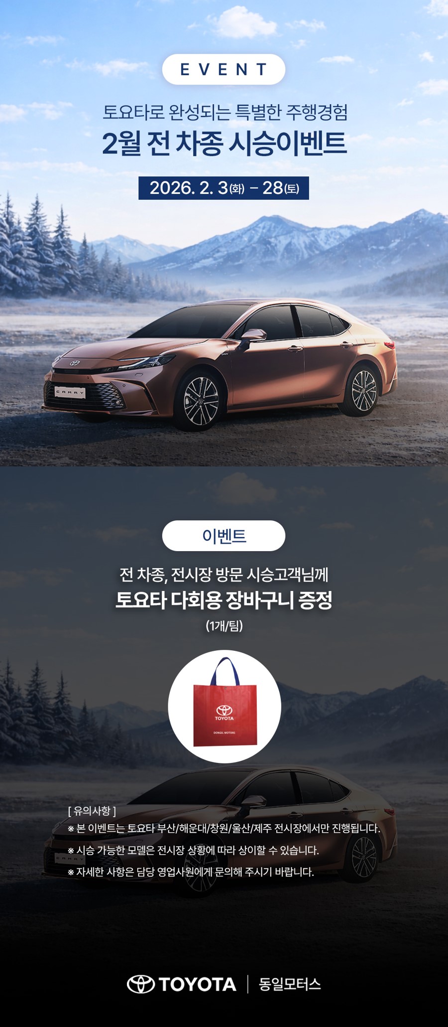 - 본 이벤트는 토요타 부산/해운대/창원/울산/제주 전시장에서만 진행됩니다.