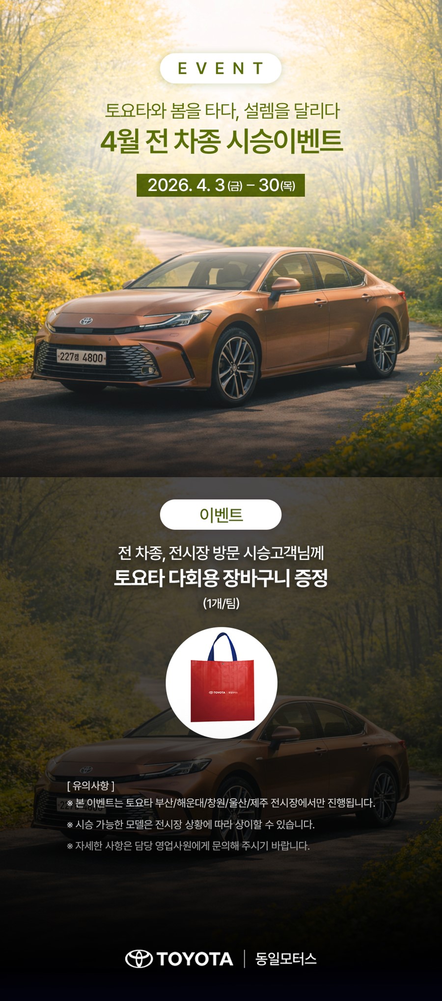 - 본 이벤트는 토요타 부산/해운대/창원/울산/제주 전시장에서만 진행됩니다.